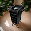 ?Carro de salón con ruedas giratorias y compartimentos multifuncionales. Resistente y fácil de mover.